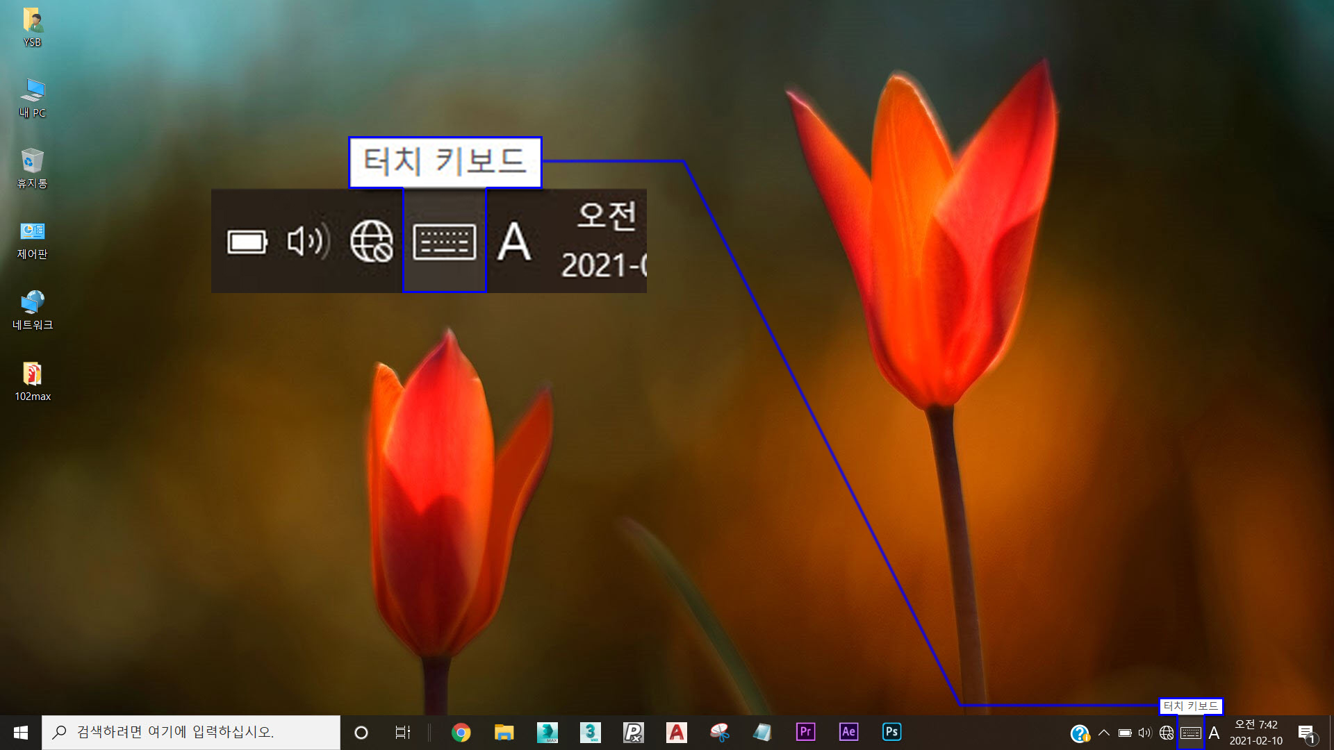 터치 키보드 단추 표시를 클릭 했어도 아무 반응은 없습니다. 터치 키보드 아이콘을 클릭해야 실행됩니다.