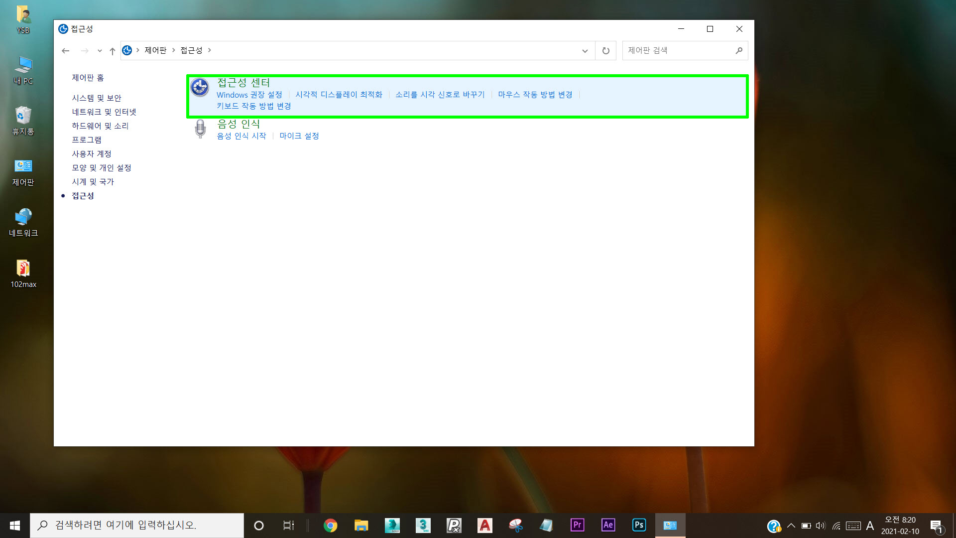 접근성 센터를 클릭합니다. (연결창이 너무 많은 것은 업데이트 해서 줄여주면 좋겠습니다. :)