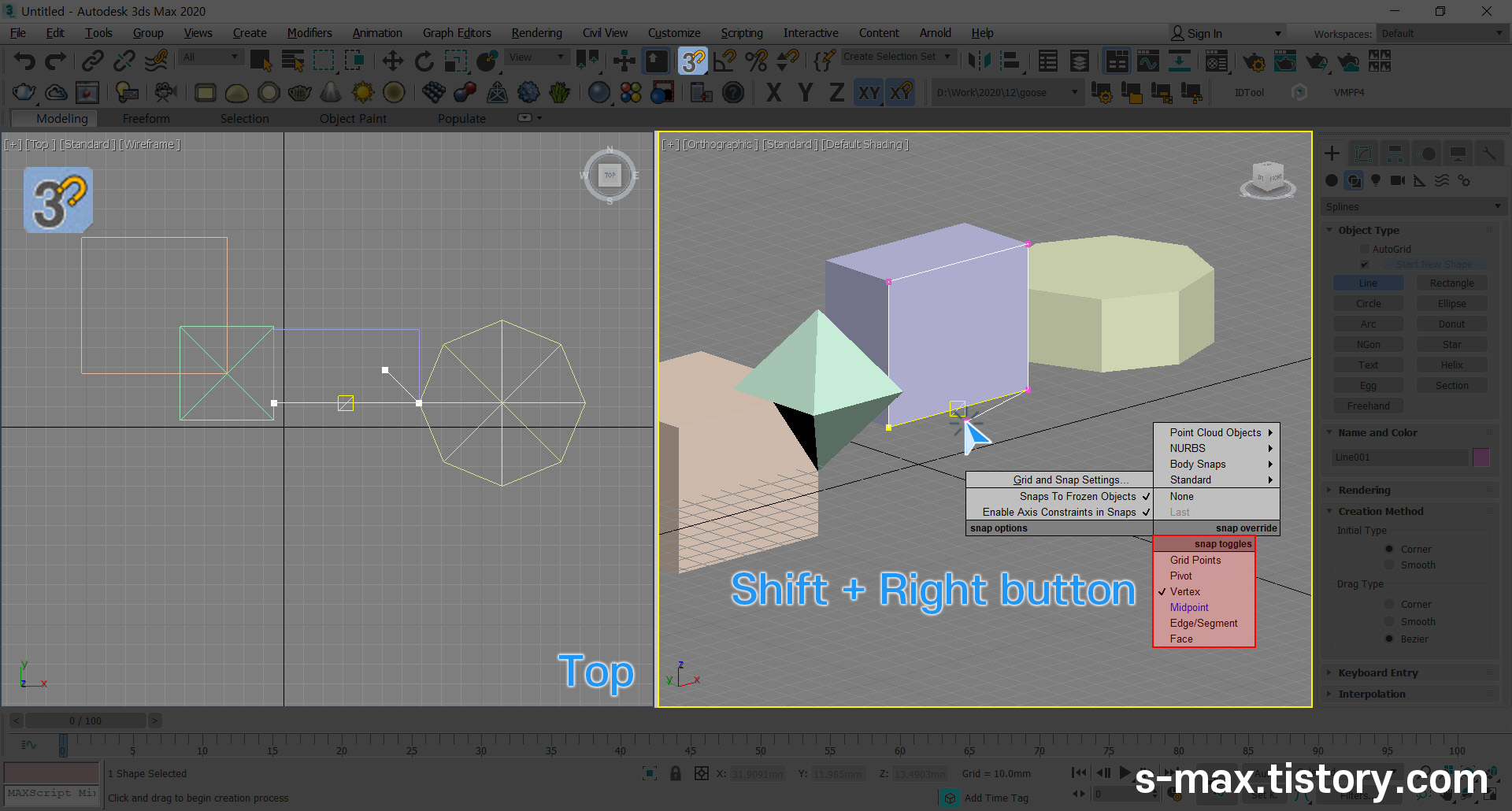2D 라인, 3D 오브젝트를 만들거나 옮길 때 snap(스냅)은 매우 중요한 역할을 합니다.