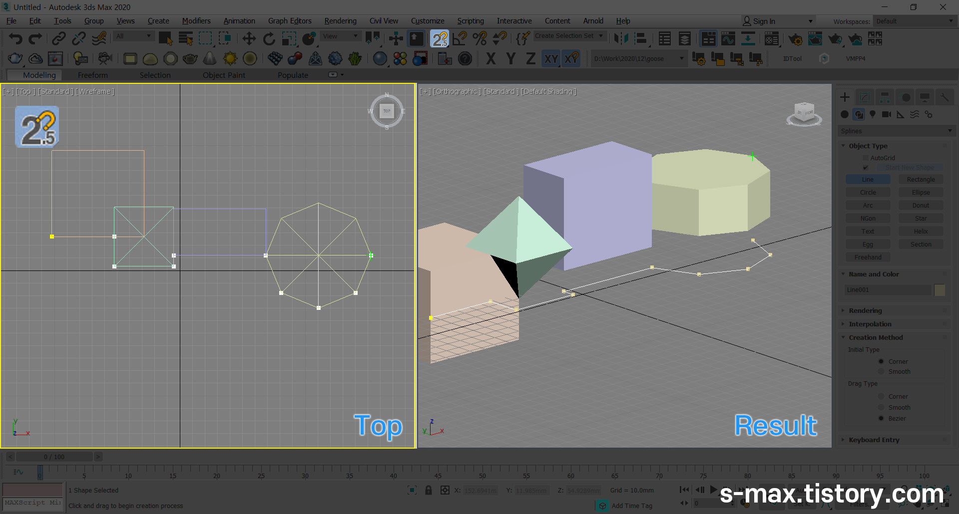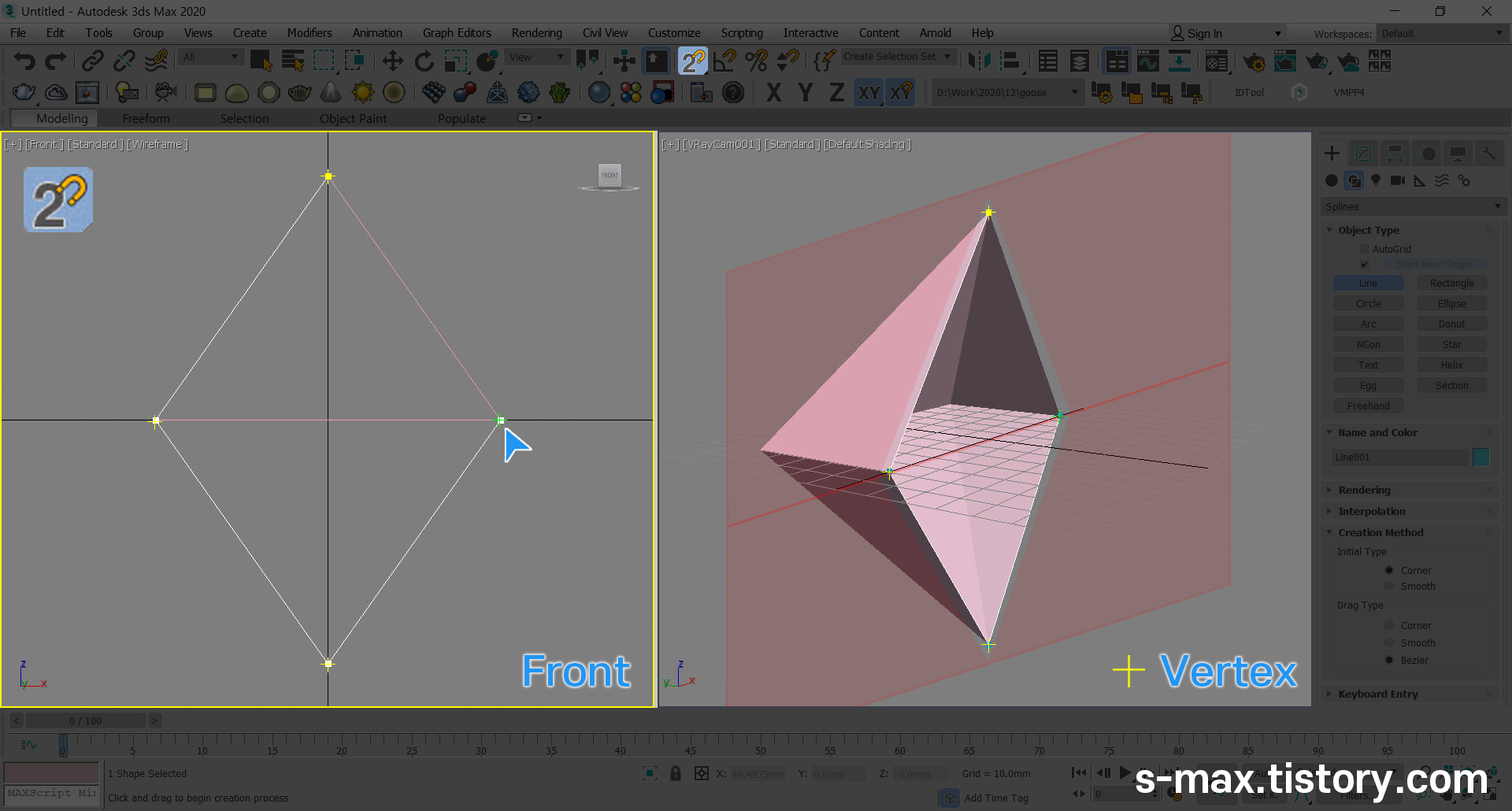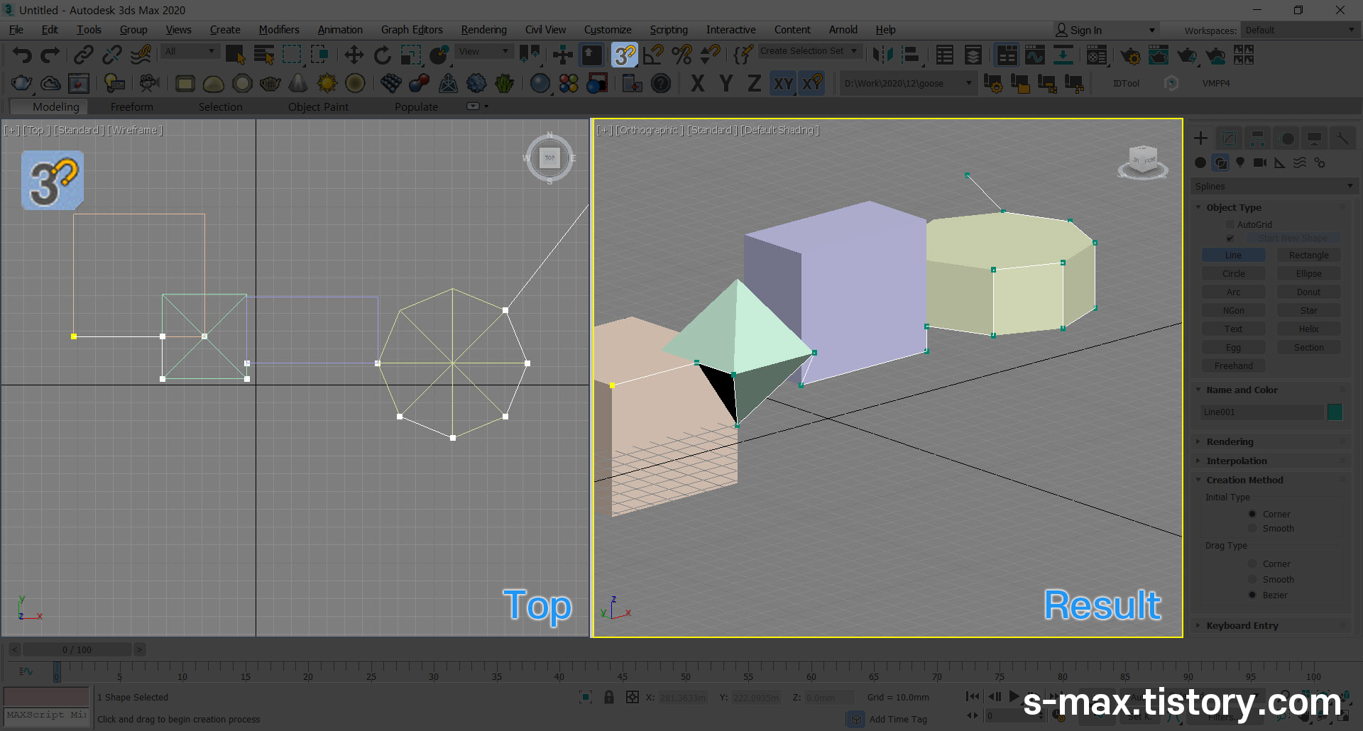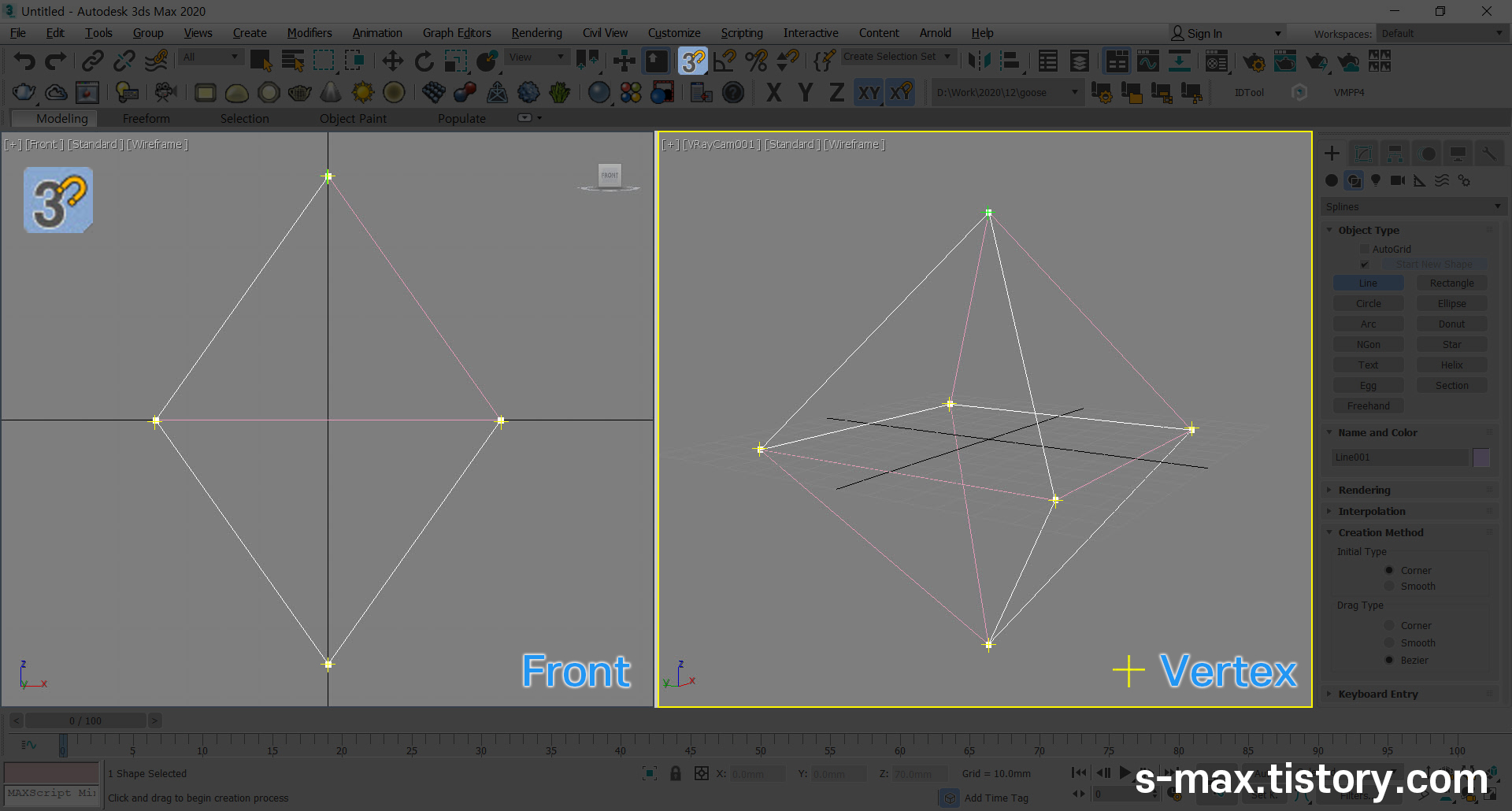3dmax에서 어떠한 형태를 라인으로 종이에 그려본다면