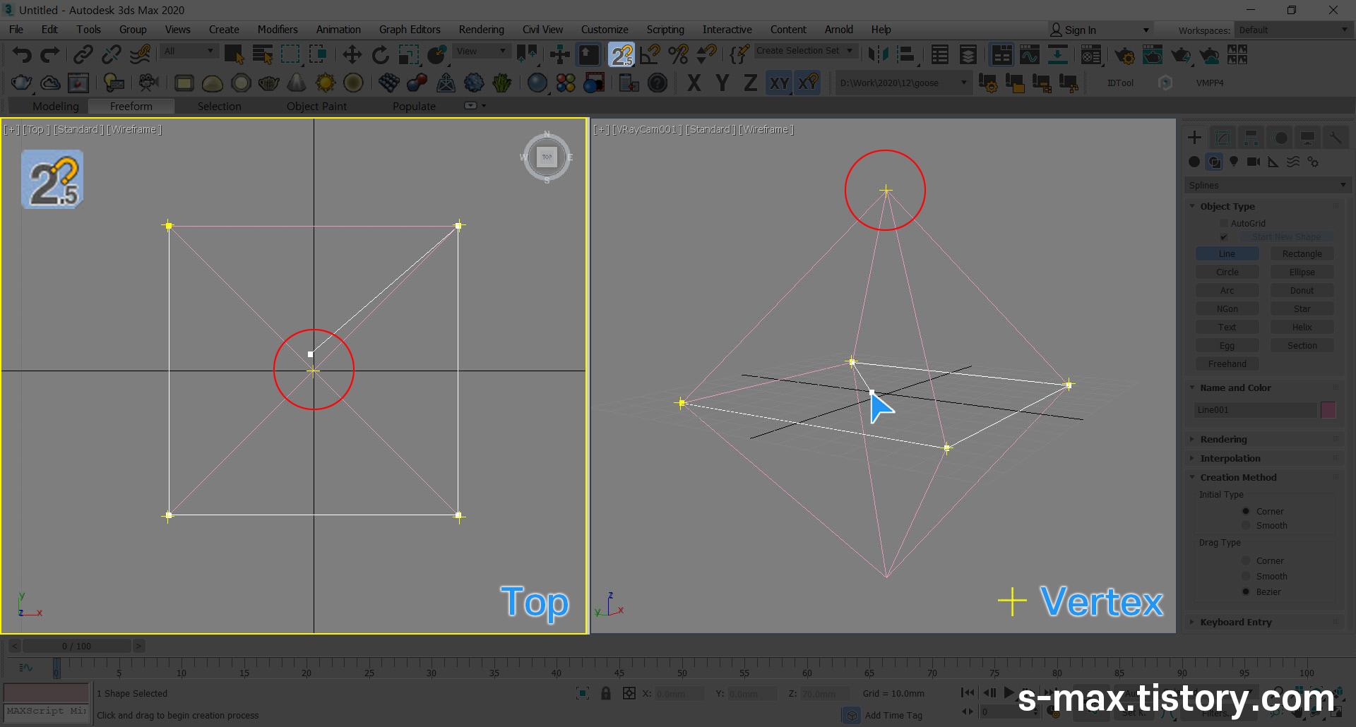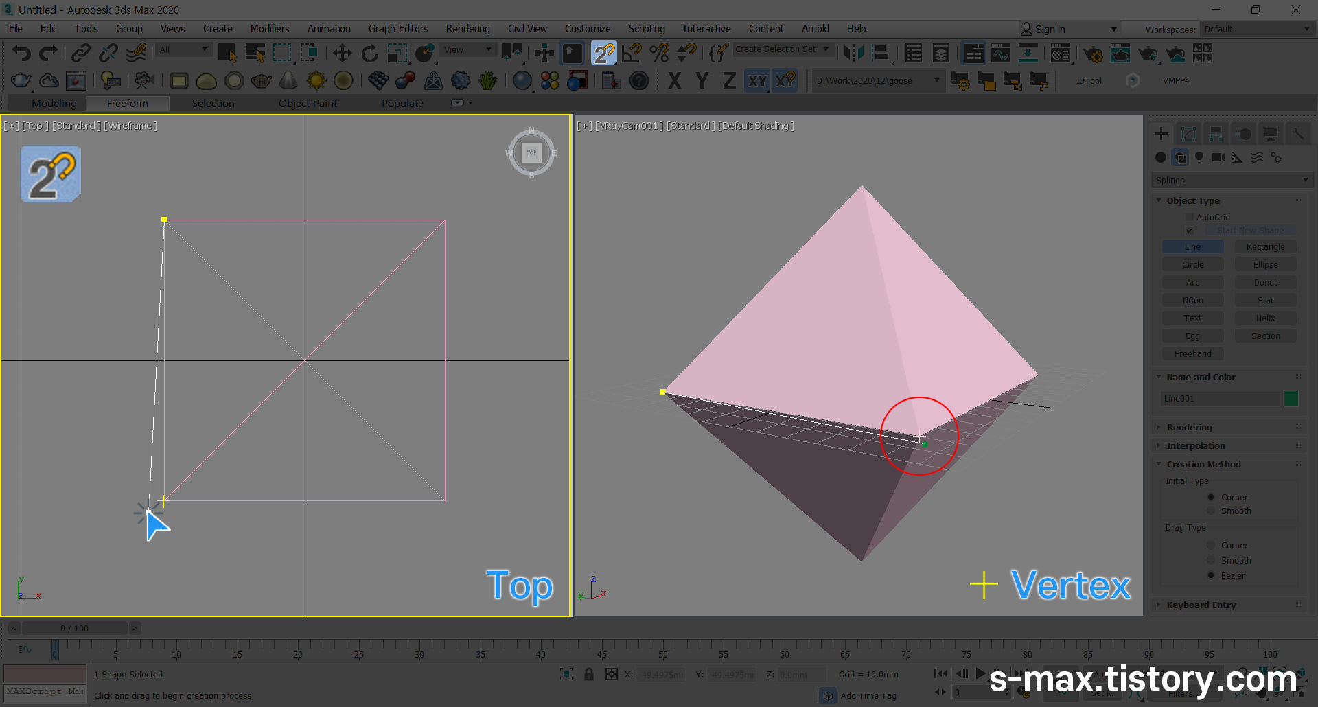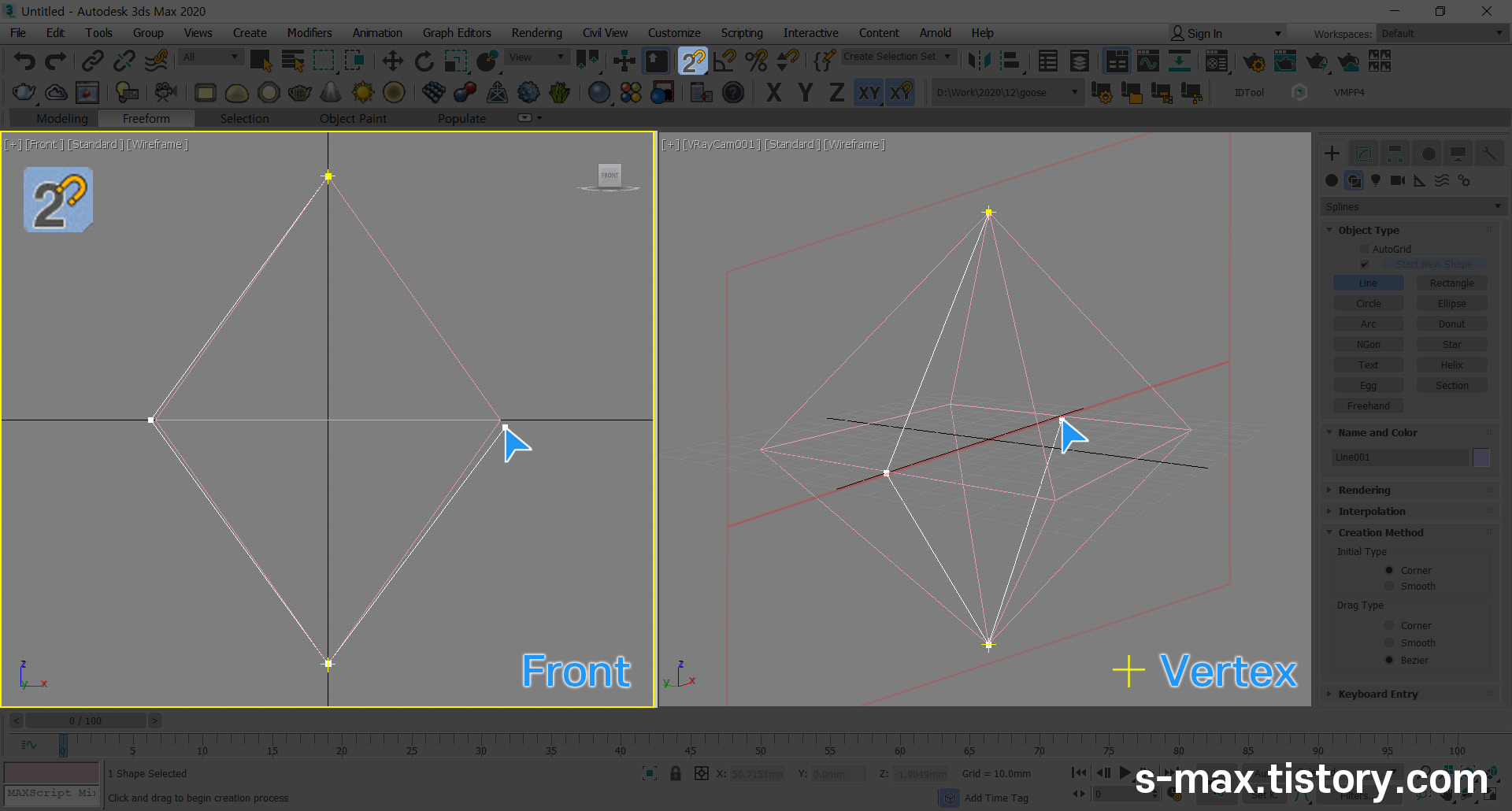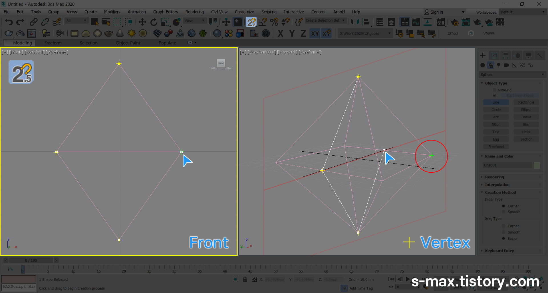 3dmax에서 어떠한 형태를 라인으로 종이에 그려본다면