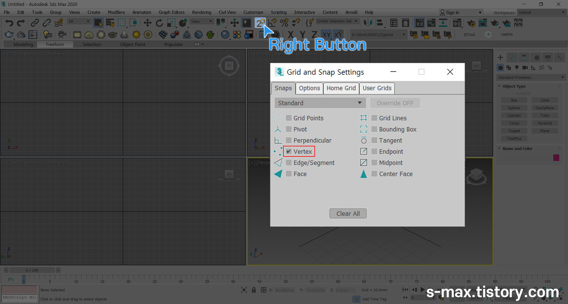 3dmax snaps 에 대한 내용을 간략히 정리해보겠습니다.