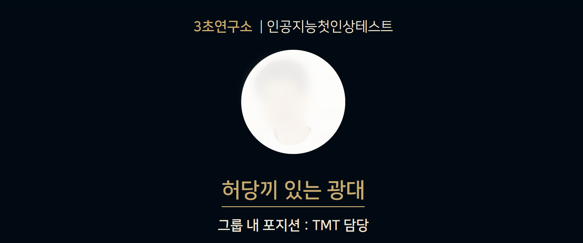 저는 미소 짓는 얼굴을 넣었더니 "허당끼 있는 광대" 라는 결과가 나왔네요. 그룹 내 포지션은 TMT 담당이랍니다. :)