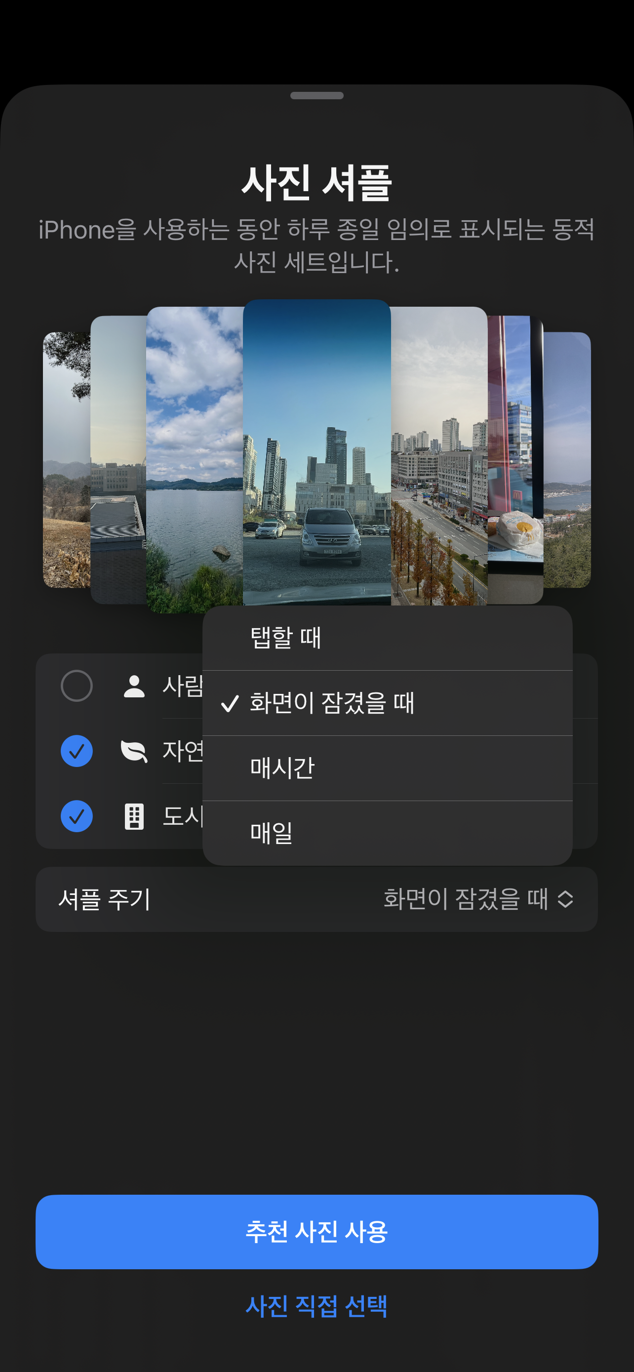 사진 셔플을 선택하셔도 좋을 것 같아요.