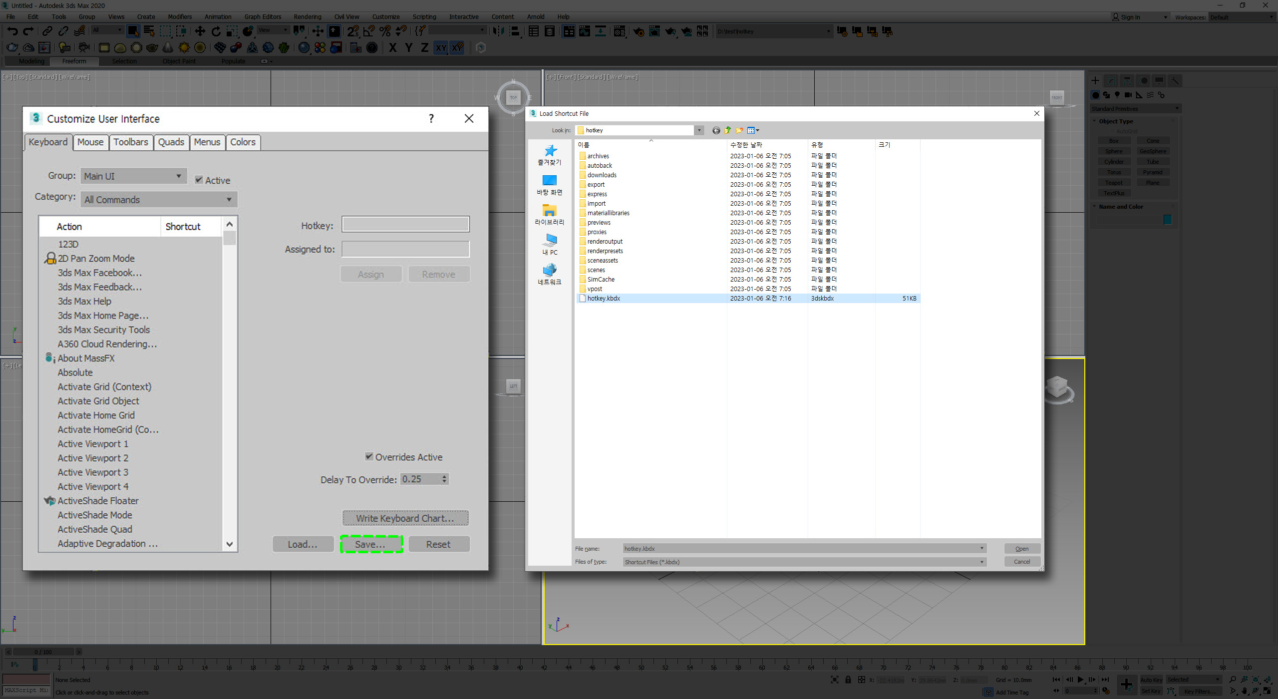 단축키를 설정했으면 파일로 저장해 둬야 해요.