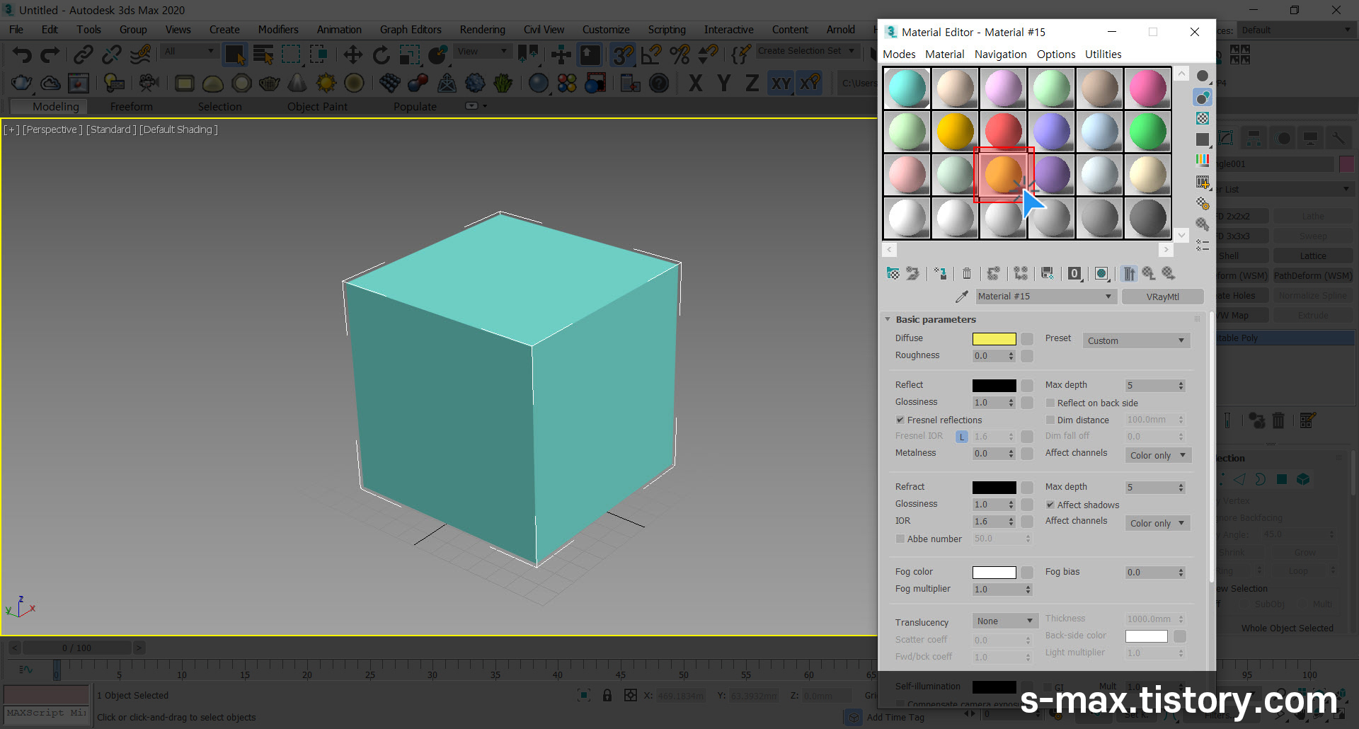 재질창을 닫고, 재질 적용할 오브젝트를 선택한 상태에서