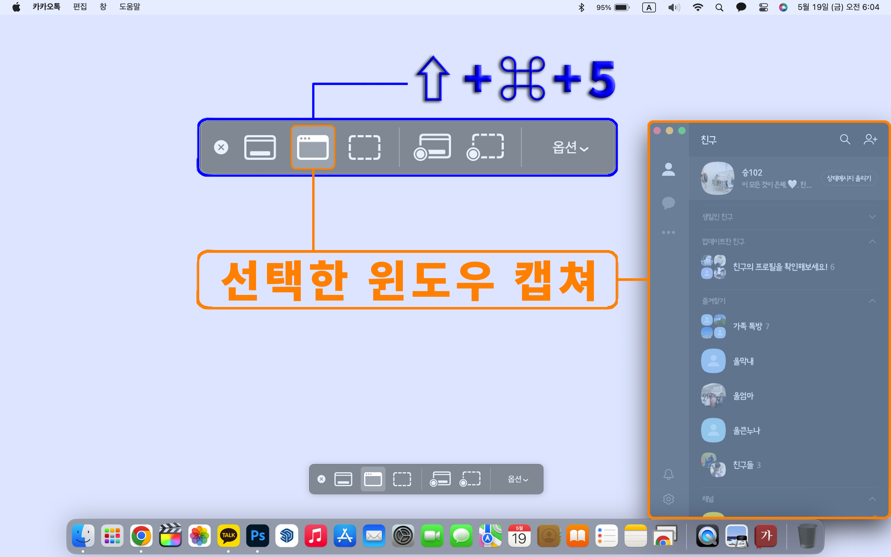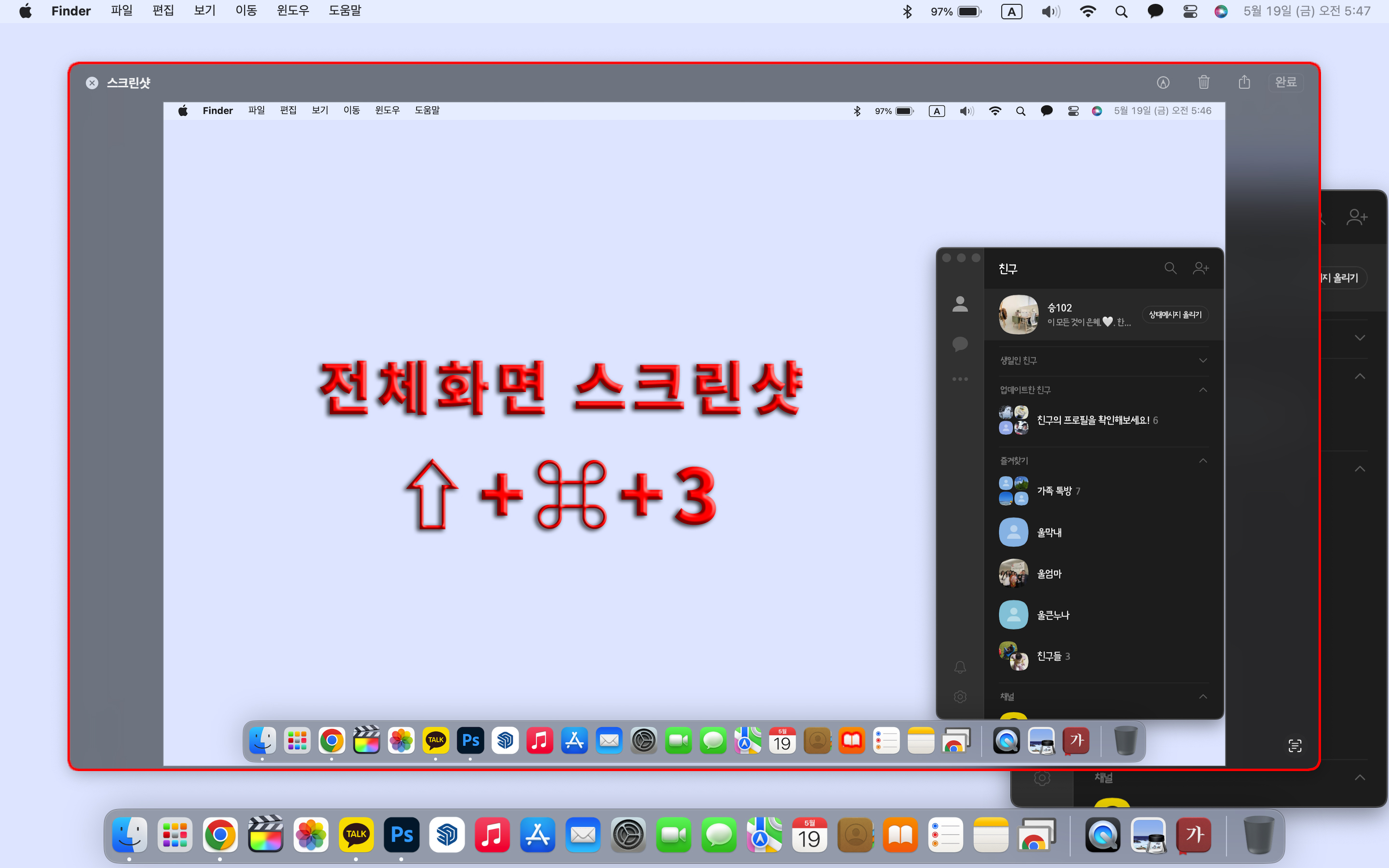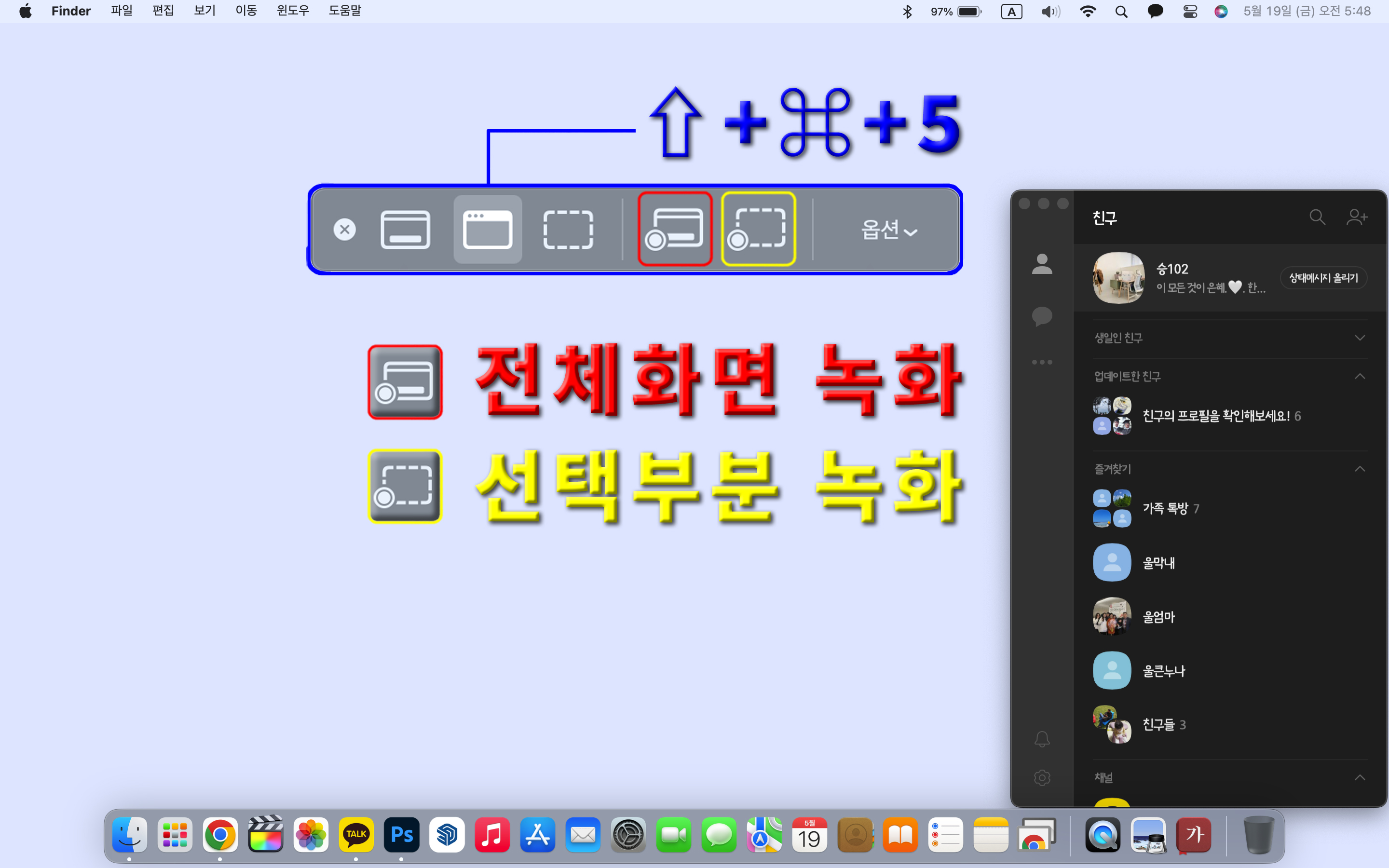 우선 "⇧ + ⌘ + 5"를