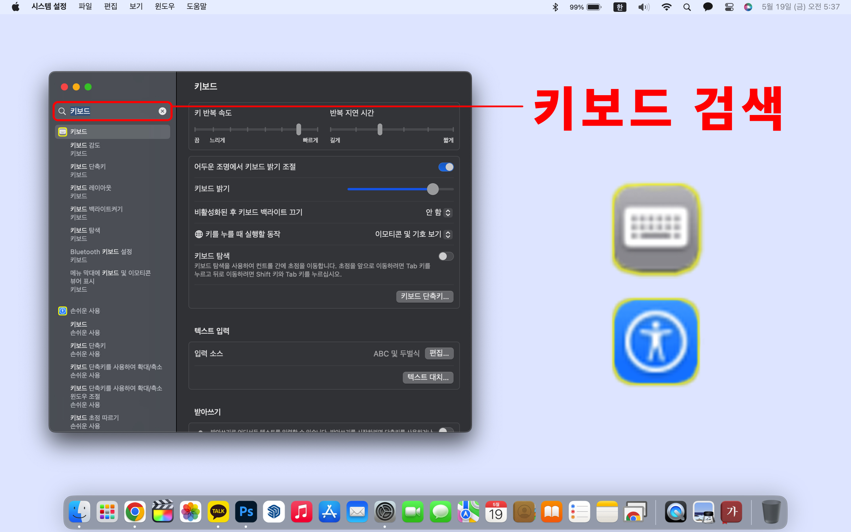 좌측 상단에 "키보드"를 검색해 주세요.