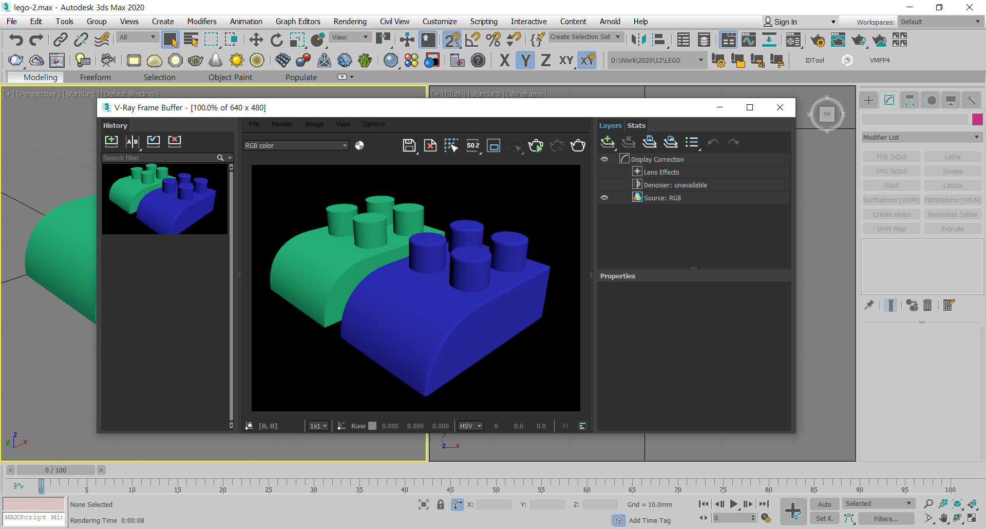 Object Color를 레고 사진처럼 녹색으로 바꿔주면 모델링 완성입니다.